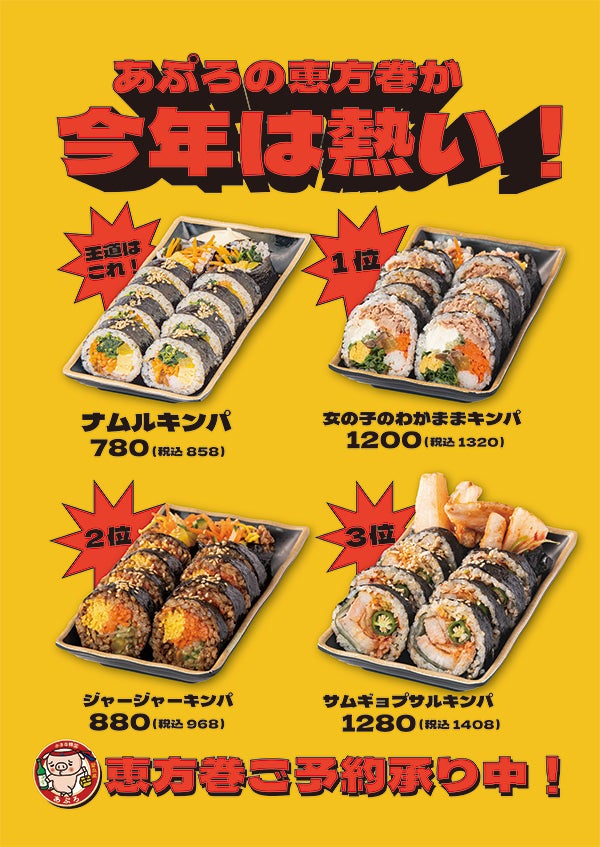 2日間限定!あぷろの恵方巻販売~あぷろグループ全店のグランプリに輝いた絶品キンパご予約承り中!