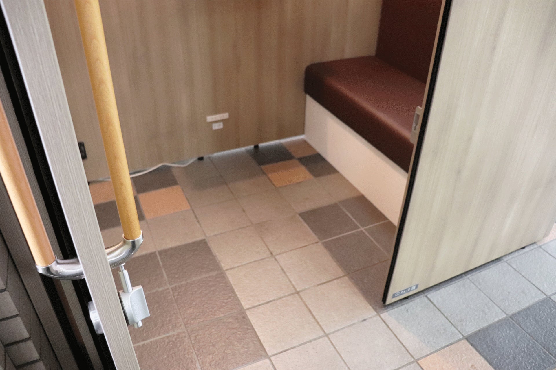 個室はダブルロック付きでプライバシーや防犯面にもしっかり配慮。工事不要の組み立て式ユニットなので、後からの設置や移設もスムーズに対応できます。室内にはコンセントや荷物フックなど、使いやすさを考えた設備が充実しているのも特徴です。