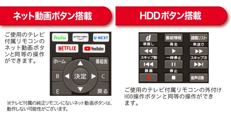 テレビリモコンが壊れた際に、「今まで使っていたネット動画ボタンが搭載されておらず不便に感じる」、「すぐに使える純正リモコンが売っていない」などのお困りごとを解決するために、ネット動画ボタン搭載テレビリモコン、かんたんテレビリモコンを開発いたしました。