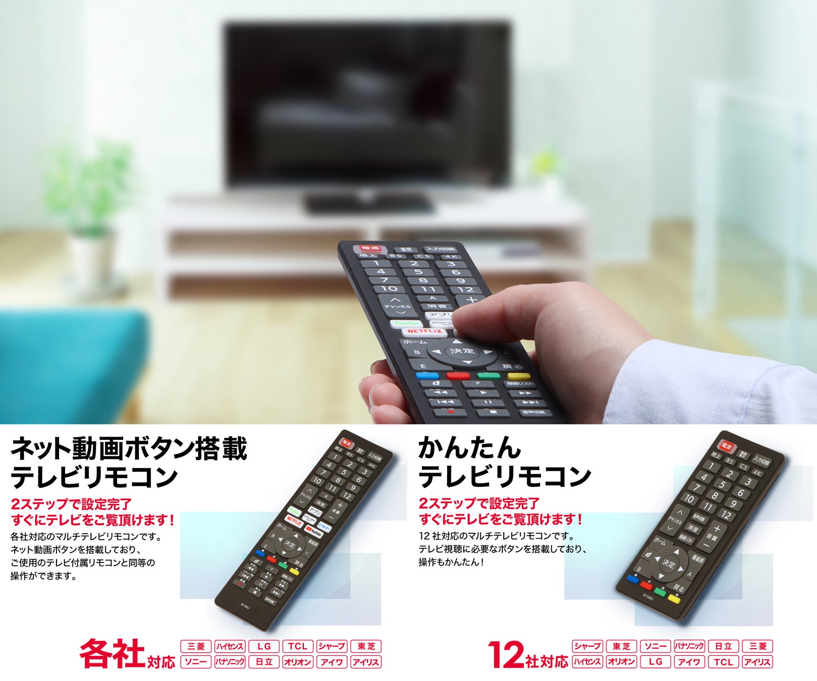 ~ネット動画ボタン搭載 テレビリモコン~ ~2ステップかんたん設定 かんたんテレビリモコン~