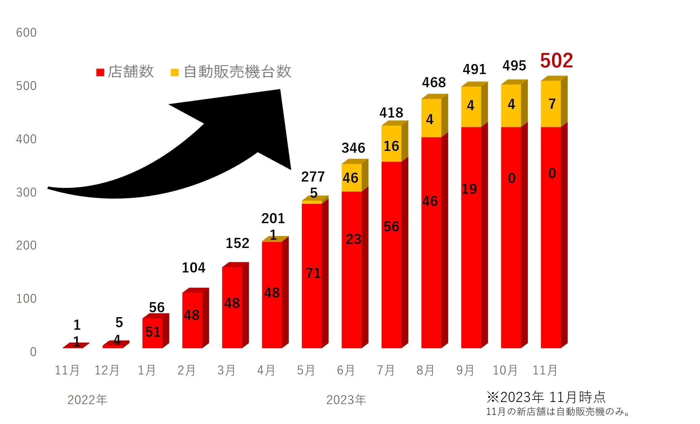 この度1人でも多くの方にご自宅でおいしいラーメンを食べていただきたいという思いから生まれた「日本ラーメン科学研究所」は、多くのお客様にご好評いただき、今月で500店舗を突破いたしました。 2022年11月25日の第1号店開業以降、全国※1に店舗拡大を行い、11月末時点で502店舗展開いたします。