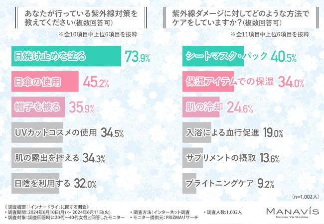紫外線ダメージを受けた肌は乾燥しやすくなるため、シートマスク・パックや保湿アイテムなどでスキンケアをする方が多くいることが明らかになりました。