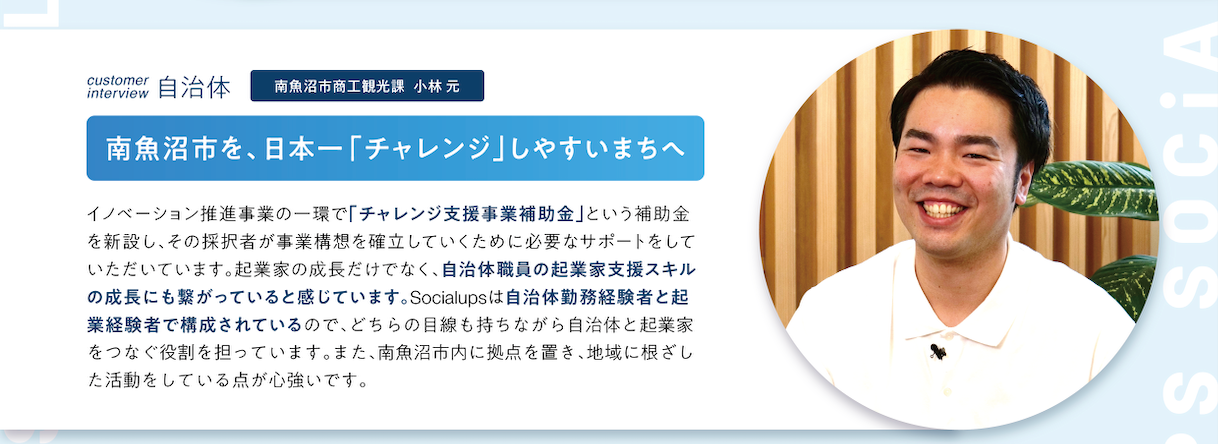 ・スタートアップアクセラレーション南魚沼:https://socialups.jp/2