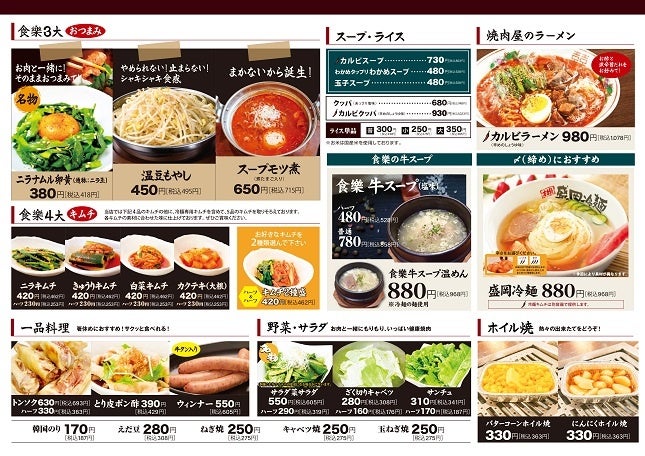 おひとりでちょっと一杯飲みたい方には、ハーフサイズの小皿メニューと種類豊富なドリンクメニューをご用意!ご家族連れのお客様にはお得な盛皿メニューや、盛岡冷麺発祥の地、岩手県で38年愛され続けた本場盛岡冷麺を是非ご賞味ください!その他、カルビラーメンや定食メニューも充実。デザートまでお楽しみいただけるいつでも気軽に立ち寄れる焼肉ホルモン店です。
