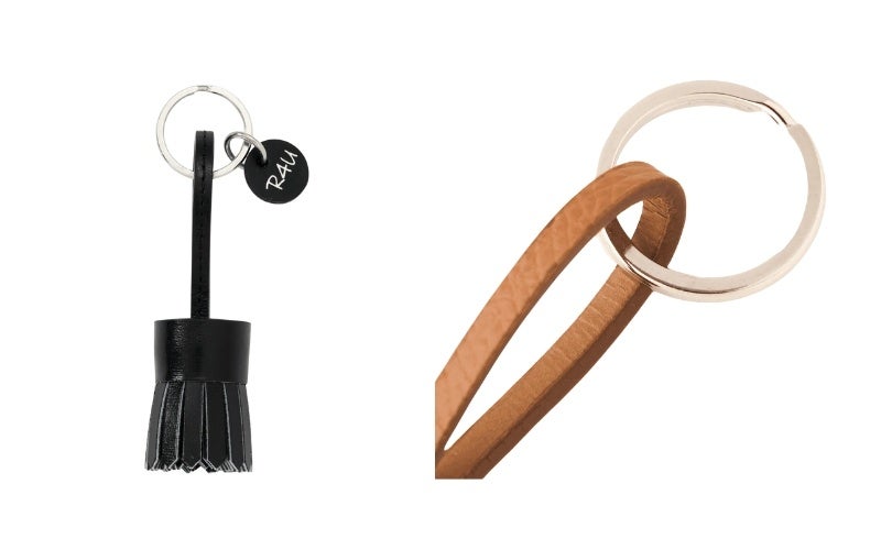 手に持ちやすいスマートなキーケース。スナップ付きリングは回転し、大きい鍵は外側にして着脱可能です。