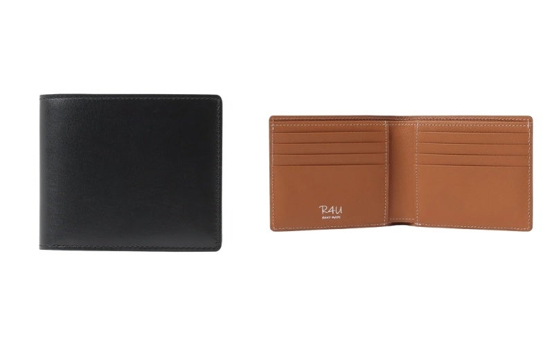 カードポケットを左右に各4つ、更に奥の両サイドにポケットを付けた、スタンダードなデザインの札入れです。