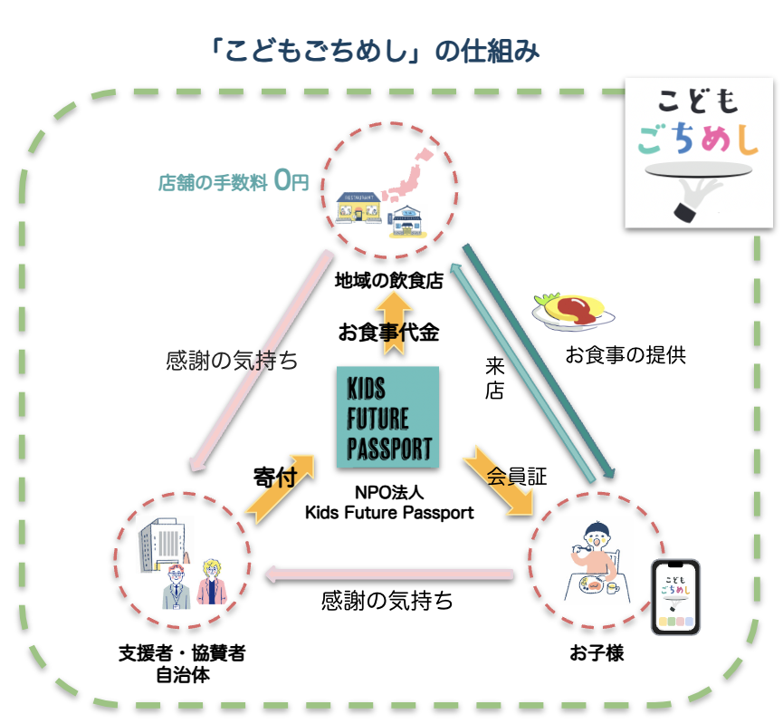 「こどもごちめし」を運営するNPO法人 Kids Future Passport(キッズ・フューチャー・パスポート)は、今後より多くのこども達に「こどもごちめし」を利用してもらえるよう、企業や個人から支援をいただくための認知活動を継続していくとともに、自治体への導入も促進していきます。