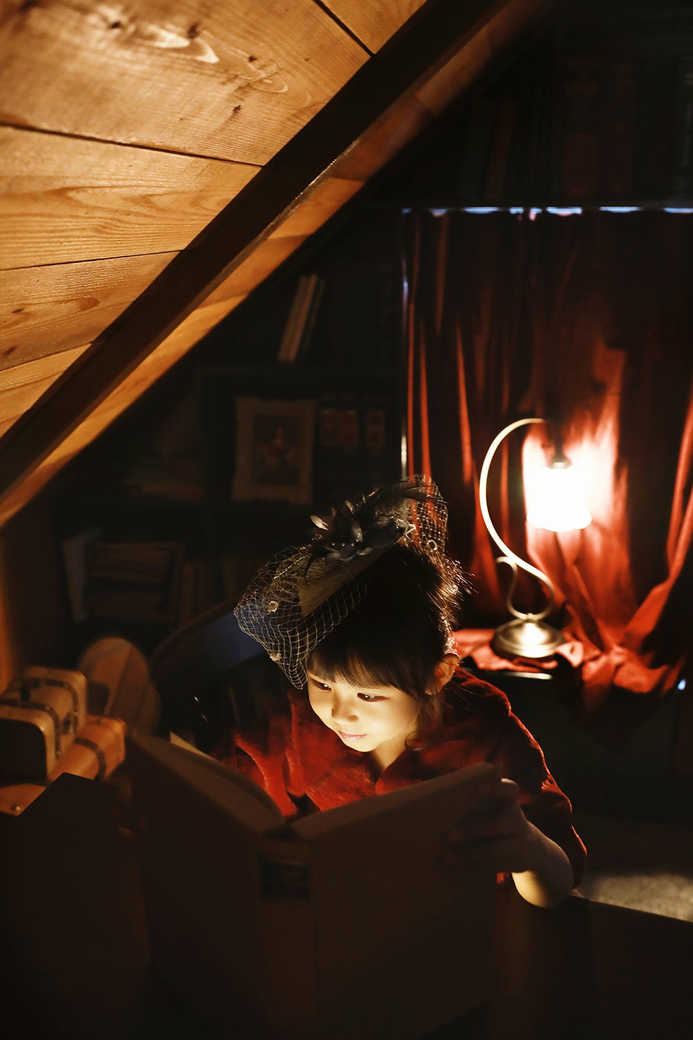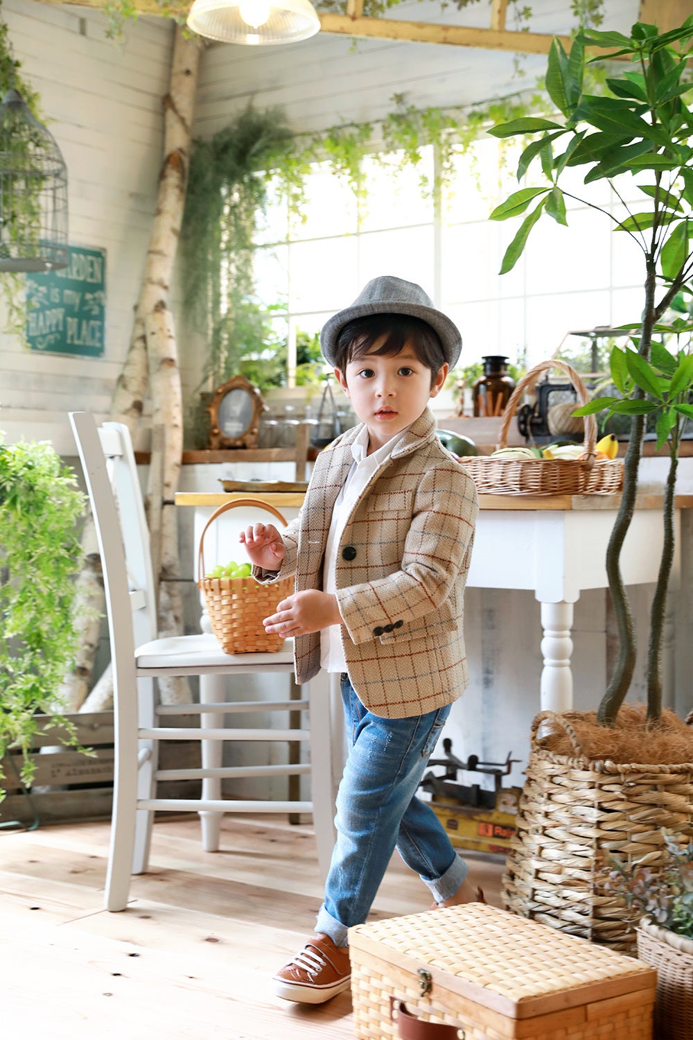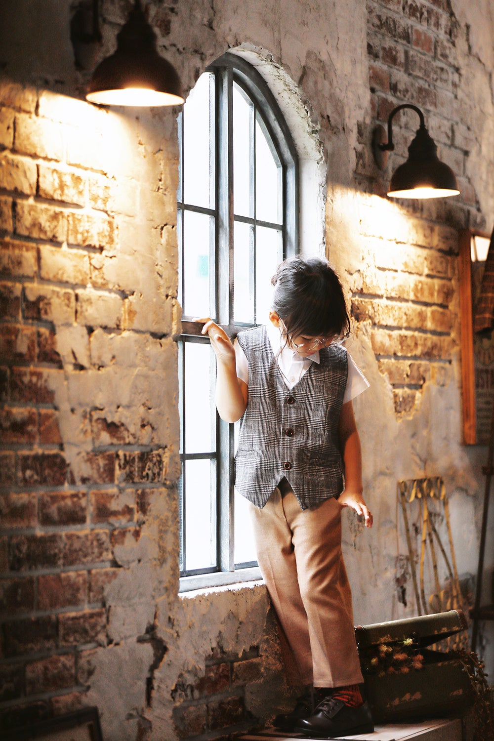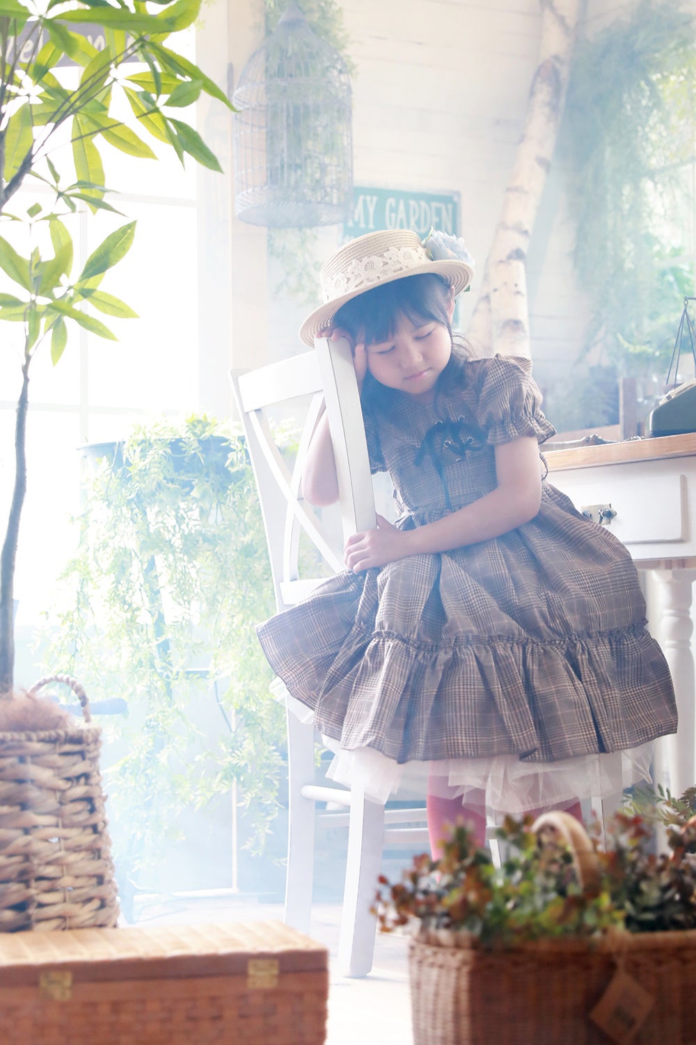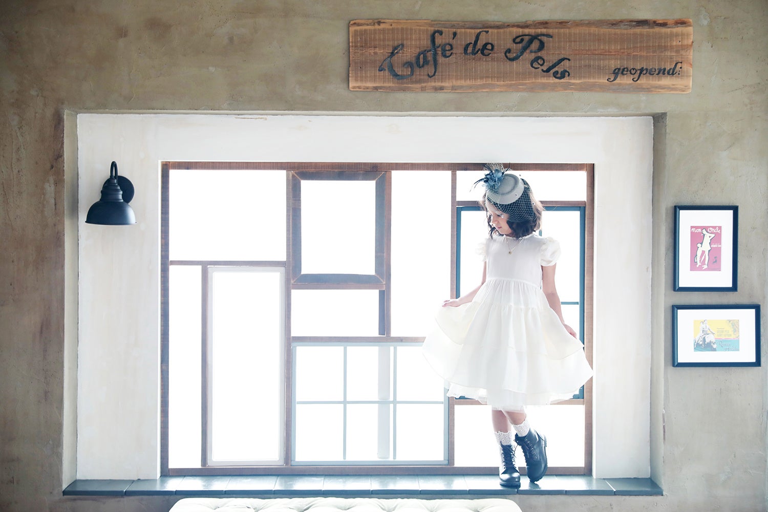 1)映画の一場面のような空間で、我が子がモデルになる。