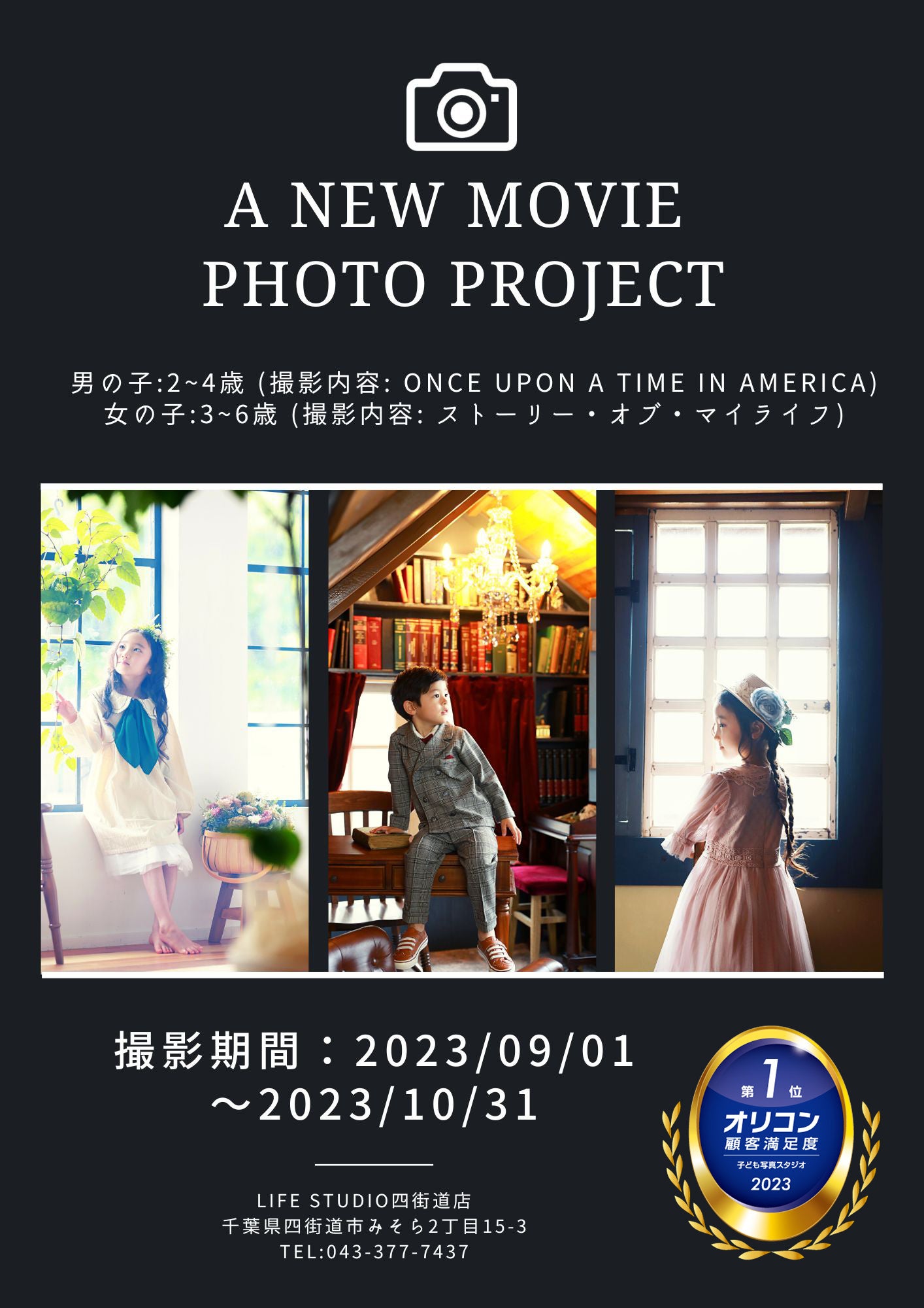 千葉県にあるライフスタジオ四街道店が新しいコンセプト撮影のモデルを募集します。2023年 オリコン顧客満足度®調査では、2年連続子ども写真スタジオランキングで総合1位に選出いただきました。