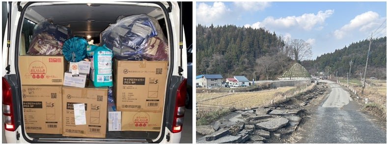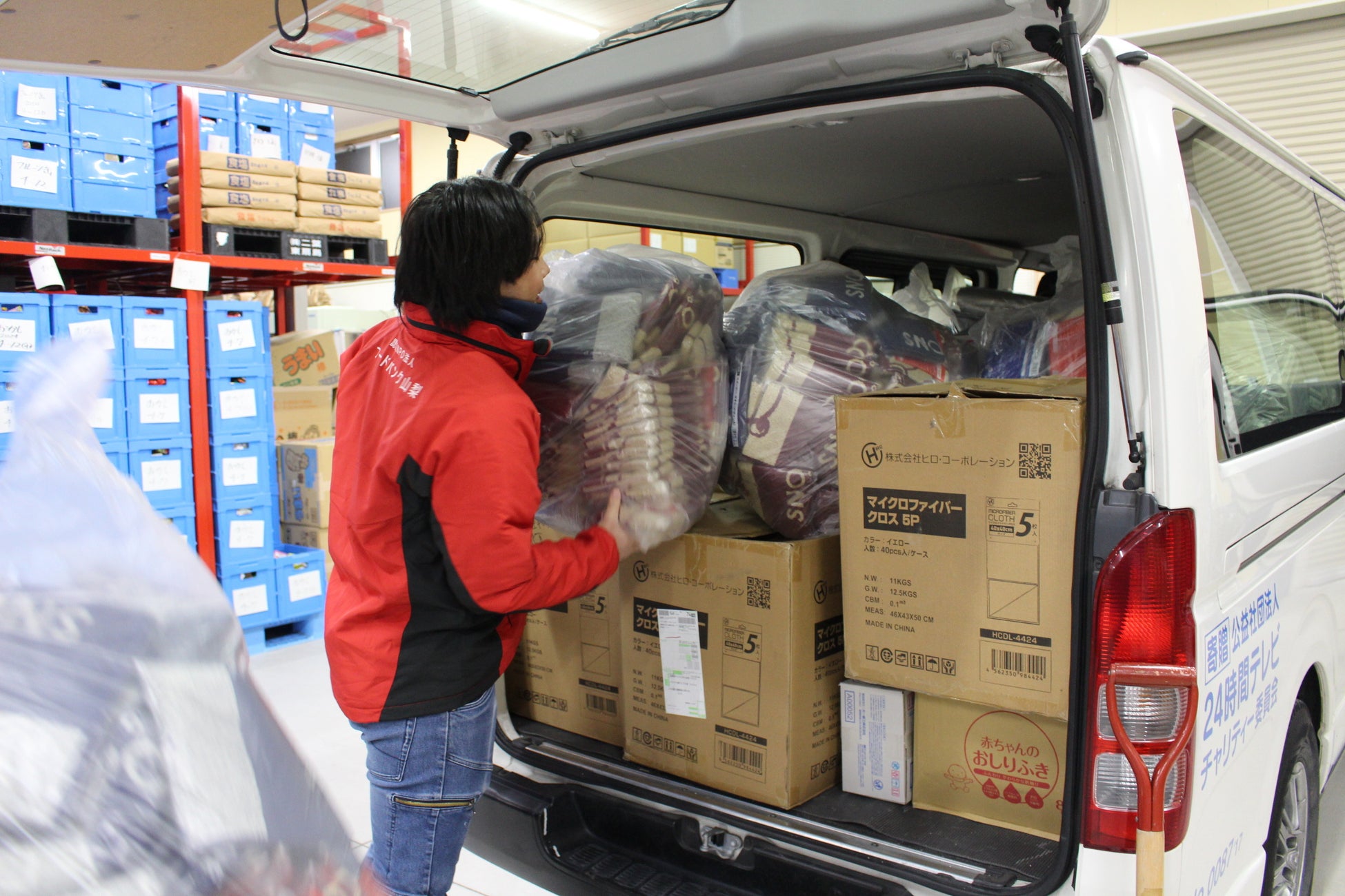飲料水などのプッシュ型の支援が届きつつあるものの、自治体関係者からのニーズとして下着やタオルなどが不足している状況で、認定NPO法人フードバンク山梨からは、タオル5,000枚、下着・靴下が男女400枚、ゴミを捨てるためのゴミ袋2,000枚、身体拭き用ウェットティッシュなどを車両に積み込み、被災地に向け出発しました。(1月6日時点)
