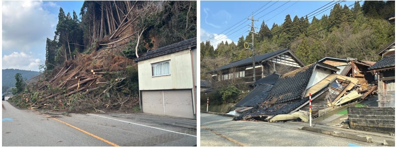 被災地までの道路は亀裂などが多く、土砂崩れなども見られます。輪島市や珠洲市など特に被害が大きかった地域では建物の倒壊も多く見られました。