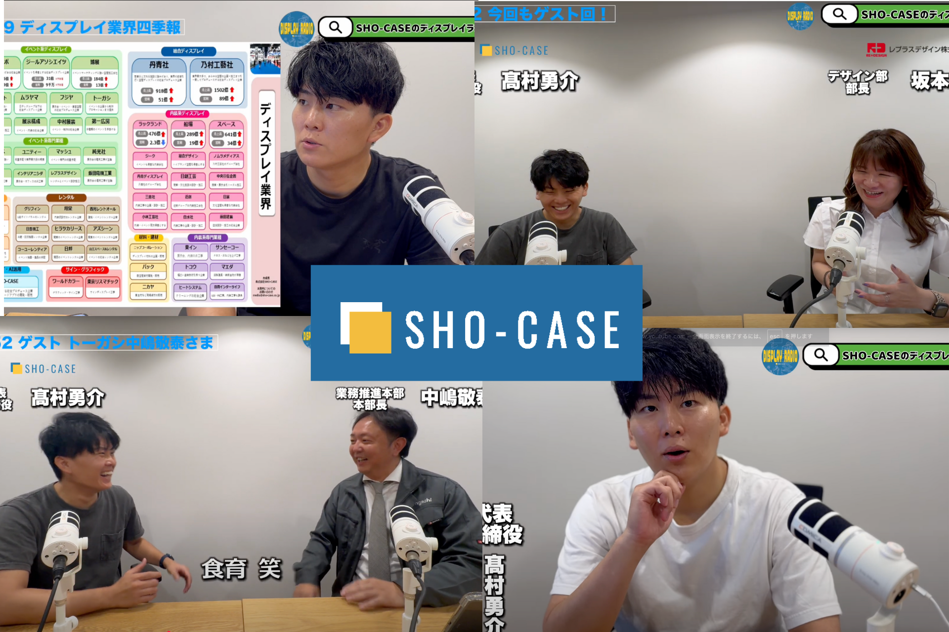 Spotifyで毎週火曜日12時に配信している「SHO-CASEのディスプレイラジオ」の動画で公開しています。建設・内装・イベント業界の働き方や現場の裏側をラジオ形式でお届けしています。内装・イベント業界からゲストを交えて対談する企画など様々なテーマで業界を掘り下げます。
