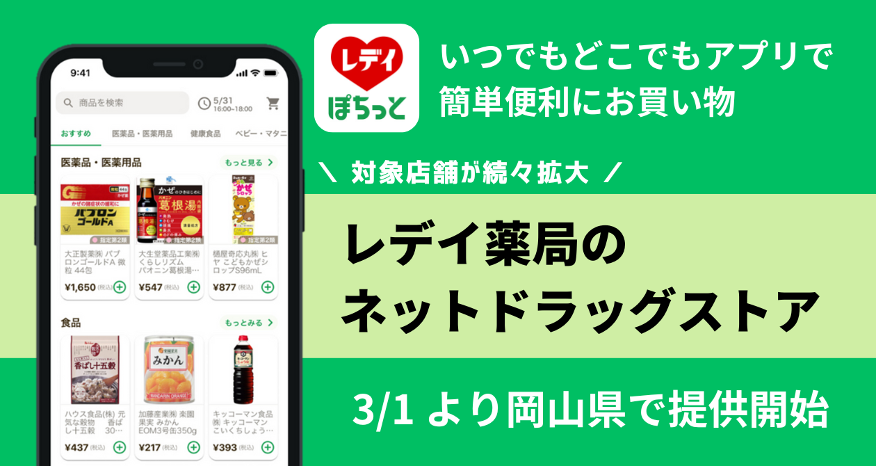 レデイ薬局がネットドラックストア「レデイのぽちっとオーダー」を岡山県6店舗に拡大