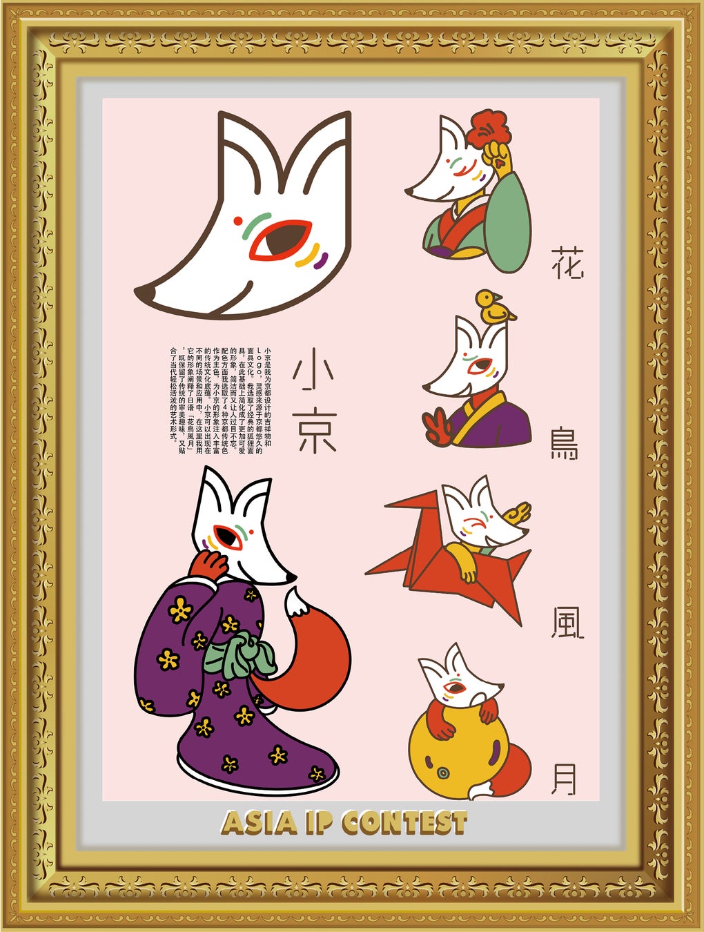 小京は、京都のためにデザインしたマスコットキャラクターとロゴです。名前は「京都」の「京」の字から取りました。小京のイメージは、京都の長い歴史を持つ面文化からインスピレーションを得ています。私はクラシックな狐の面を選び、それをより可愛らしく、シンプルで一度見たら忘れられないデザインにアレンジしました。