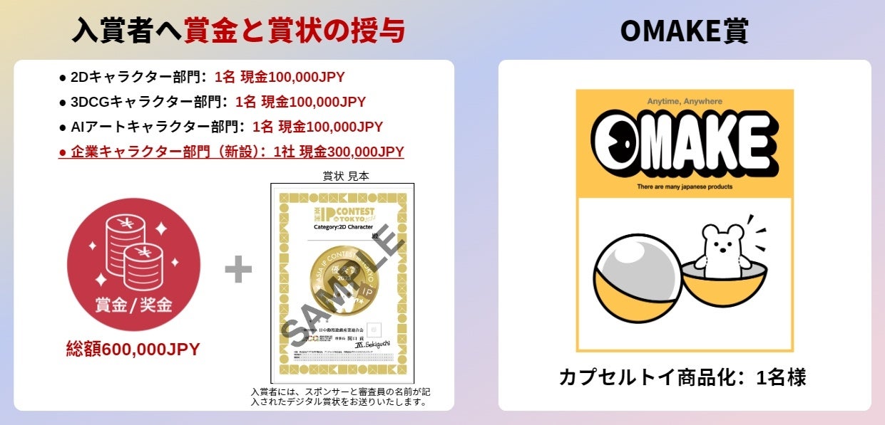 また、法人キャラクター部門最優秀作品が商品化の権利が得られるOMAKE賞も獲得しました。