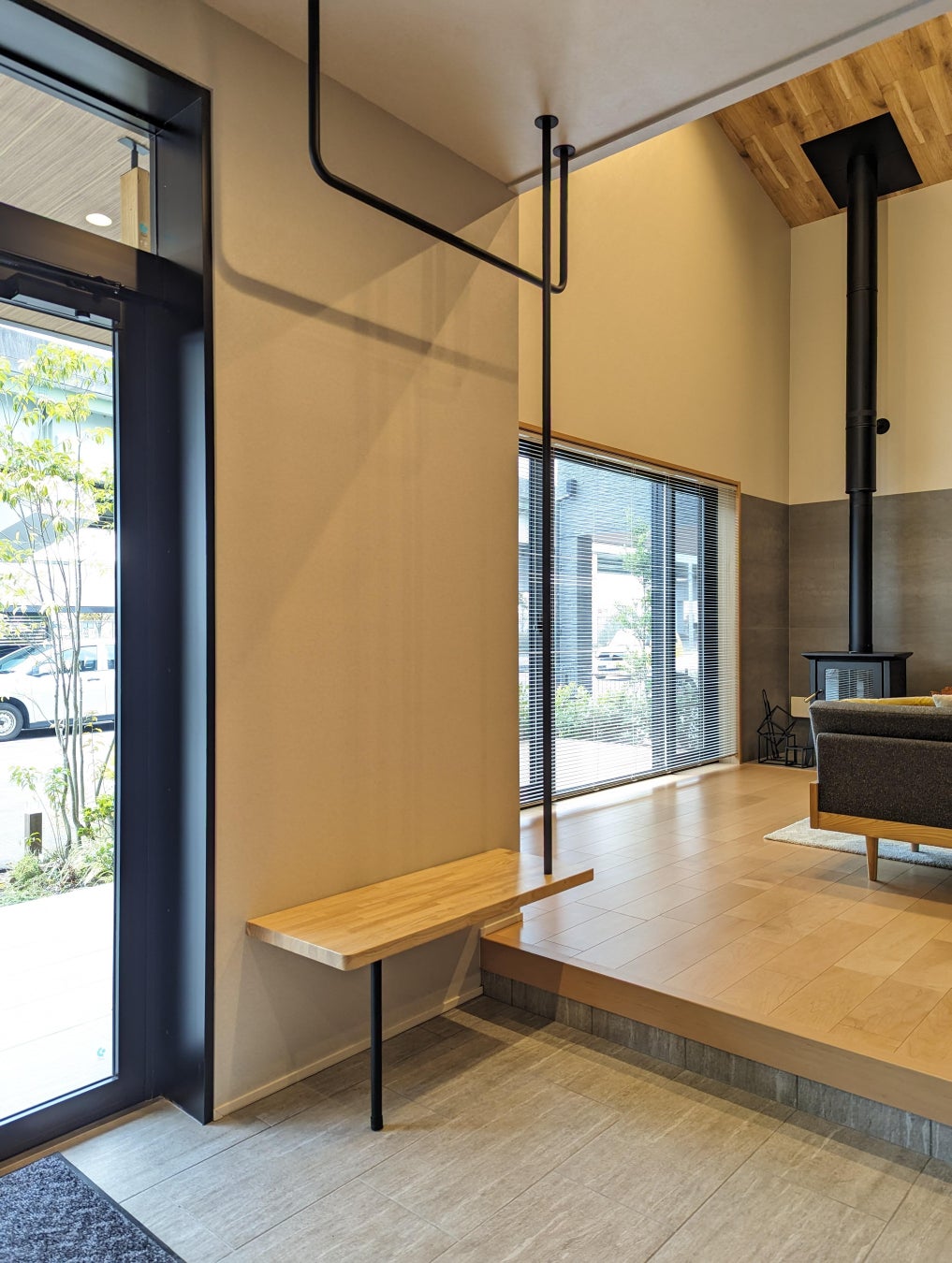 さらにカツデンの『玄関ベンチ』は、靴の脱ぎ履きのタイミングで掴むための縦手すりが通っており、一連の動作をスムーズに行えるよう配慮されています。