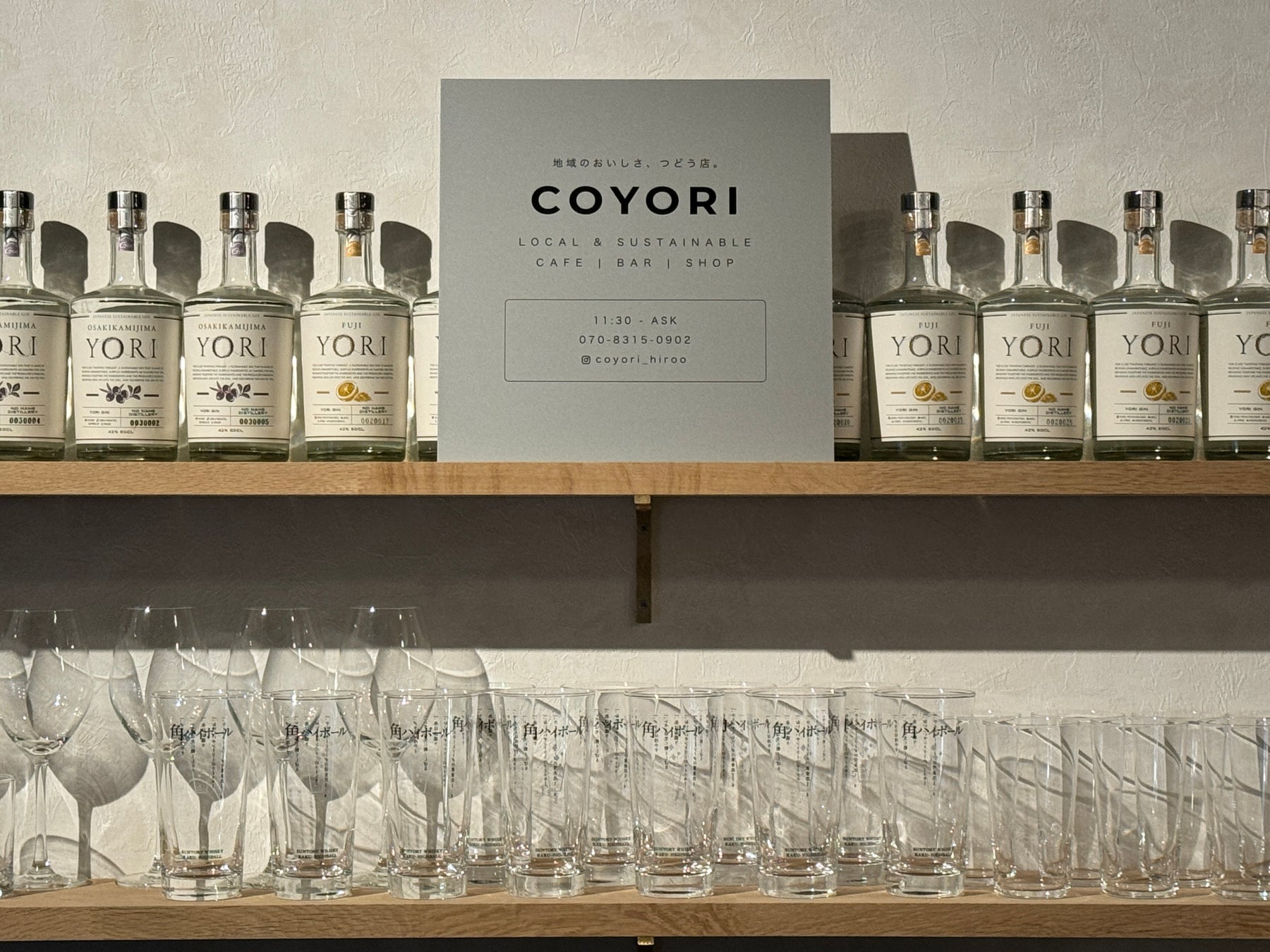 店舗名である「COYORI」には「YORI」を中心に、地域のあたらしい価値を、こよりのように紡いでいく。そうして地域を「ここより」どんどん盛り上げていくという想いが込められています。