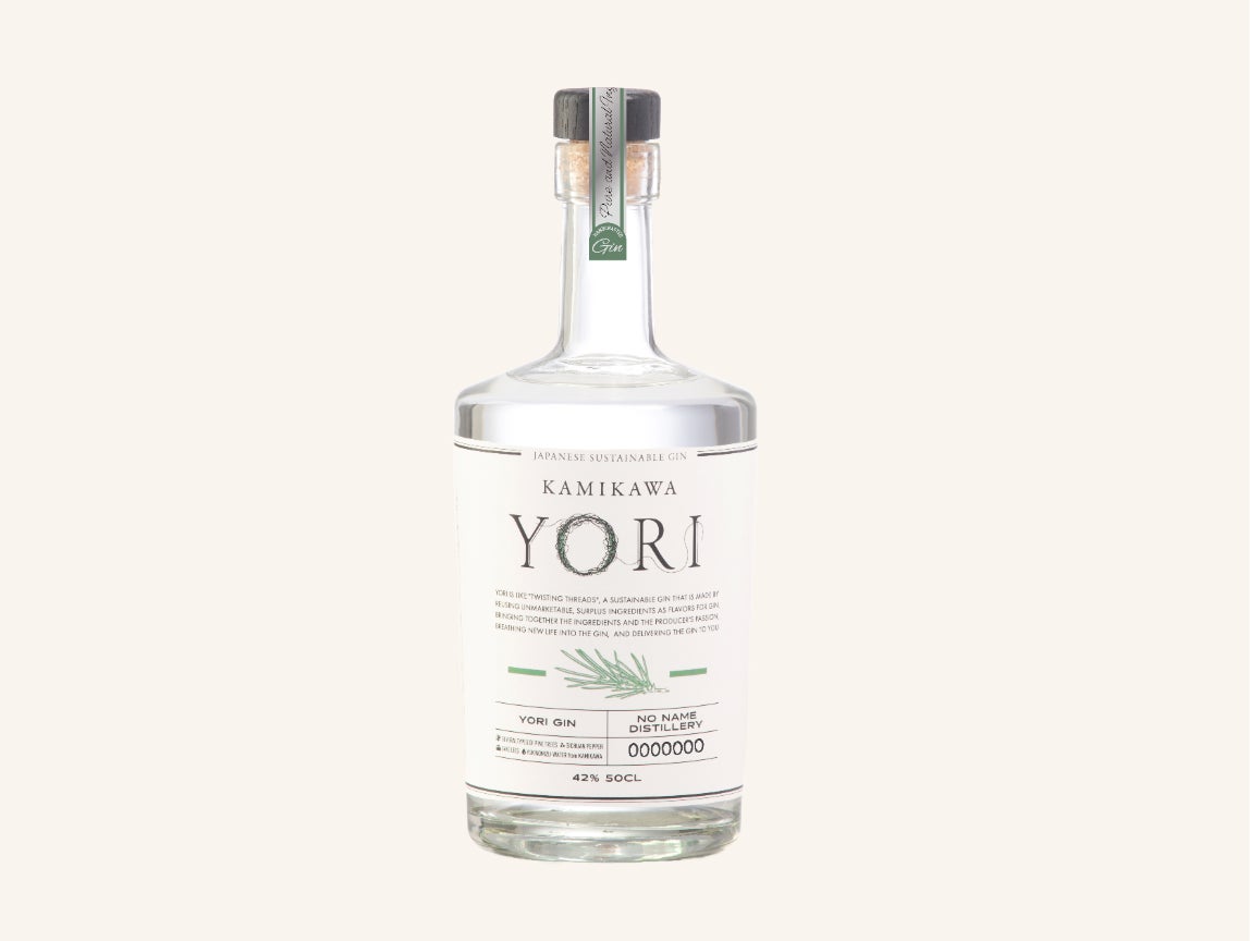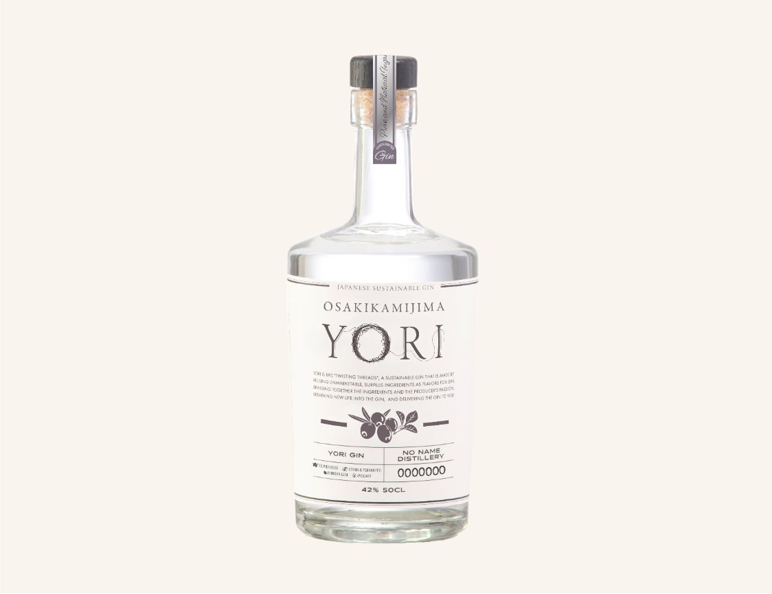 看板商品は、NO NAME DISTILLERYのオリジナル商品であるサステナブルジン 「YORI」です。規格外品などの理由から、価値があるのに捨てられてしまう素材を利活用して作る国産サステナブルクラフトジンは、世界最高峰の品評会「IWSC 2024」でも、高く評価されています。