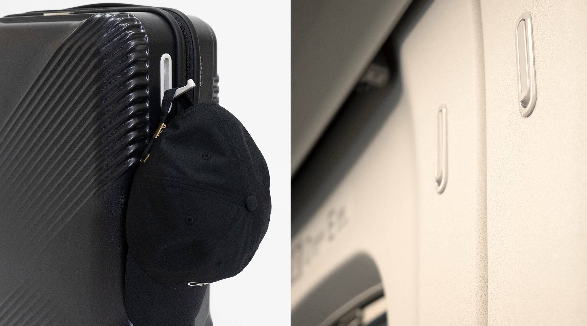 本体側面に、実際に東海道新幹線N700系typeAで使用されていた「帽子壁掛フック」を搭載。帽子や上着、手回り品など、一時的に軽い荷物を掛けることができます。