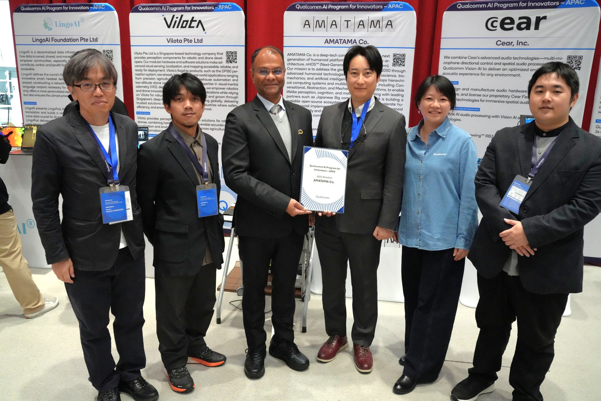 AMATAMAは2025年6月より クアルコム・テクノロジーズ (Qualcomm Technologies, Inc.、以下「クアルコム」) が主催する Qualcomm AI Program for Innovators (QAIPI) 2025 – APAC にAPAC地域(日本、シンガポール、韓国)のスタートアップ15社のうちの1社に採択されました。このイノベーションプログラムでAMATAMAは、クアルコムの最新エッジAIのハードウェアに対し、AMATAMAが構築している次世代ヒューマノイド・プラットフォーム「nHOS™」の概念実証として開発を進め、実際に稼働するロボット・デモンストレーターの実装を目標に取り組みました。約6か月間に渡りクアルコムの技術チームによるサポートとメンタリング、そして参加協力企業としてNECソリューションイノベータ、開発協力企業としてLaboRobo、Tsubame Labと共にチームを組んで実施しました。そして2025年12月5日に韓国ソウルにて開催されたデモデイで、Qualcomm Dragonwing™ の AI 100 Ultra に実装されたの一連の動作を成功させました。