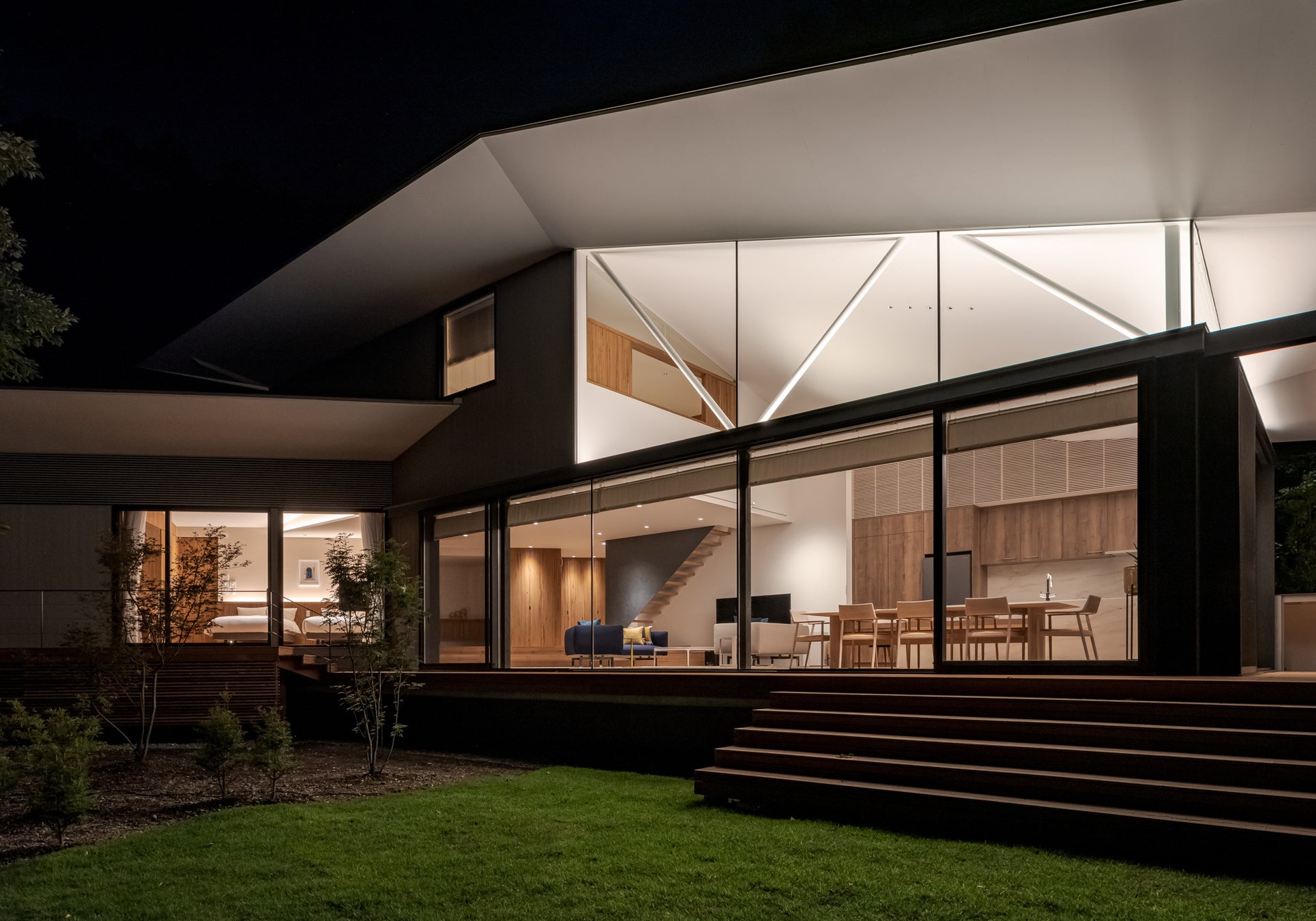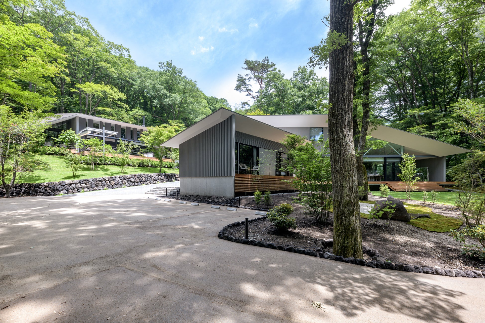 旧軽銀座から徒歩7分、別荘の発祥の地である愛宕地区において、3472.6平⽶の敷地に南北につながる合計492.35平⽶の別邸が完成。軽井沢における新しいライフスタイルをご提供します。