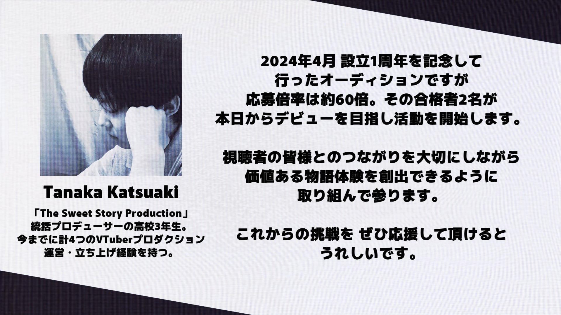 合同会社RaVit (東京都中央区:代表 白川糧)が運営する VTuberプロダクション「The Sweet Story Production」オーディション通過者が活動を開始する事をお知らせします。