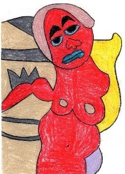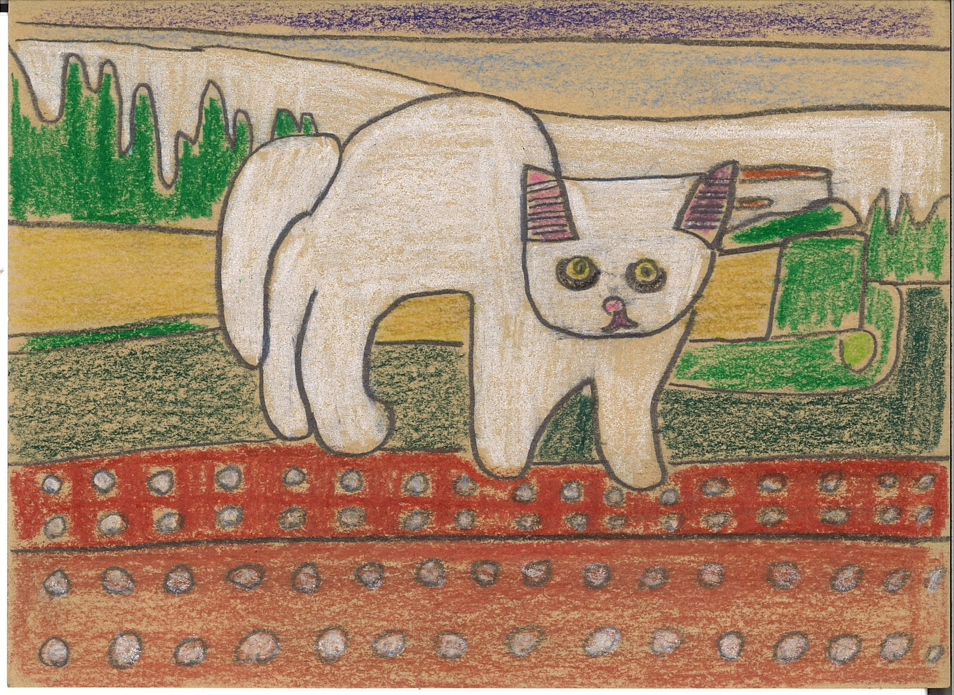 嬉々‼ CREATIVEのベテラン作家。色鉛筆で着色しているが、筆圧が強くオイルパステルと間違えられることが多い。制作初期の’90年代にはものすごい勢いで制作していたため、机の脚が曲がってしまったというエピソードも。年代ごとに選ぶ紙やモチーフ、好んで使用する色も変わり、最近は自身の旧作をもとに新作を生み出している。