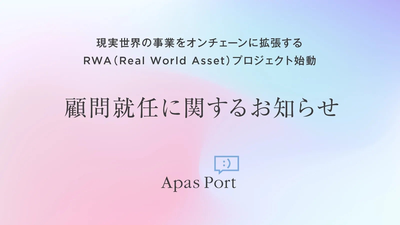 現実世界の事業をオンチェーンに拡張するRWA(Real World Asset)プロジェクト始動【顧問就任に関するお知らせ】