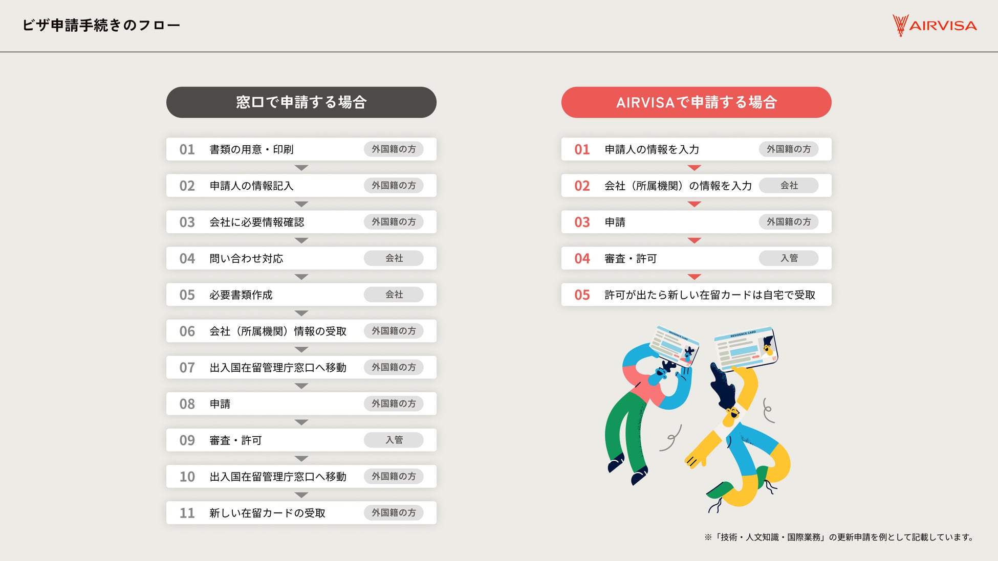 当社は、「AIRVISA for Business」の提供を通じ、企業向けに在留資格情報の管理/外国人雇用状況届出のオンライン化などコンプライアンス体制強化をサポートするサービスを開発して参りました。この度、同サービスの開発・提供を通じて培った経験・知識を応用して「AIRVISA」の提供を開始しました。
