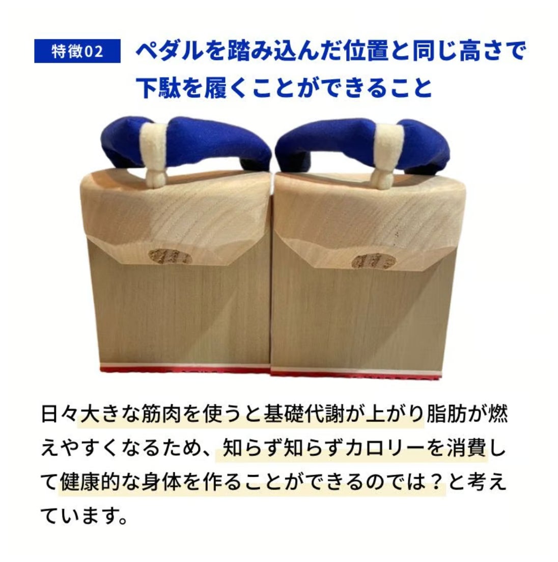 更なる運動機能のサポートを目的とした方にはもちろん、日常生活の中の身近なものとして一本歯下駄を取り入れていただき、多くの方の健康のサポートに足元から寄与したいと考えております。