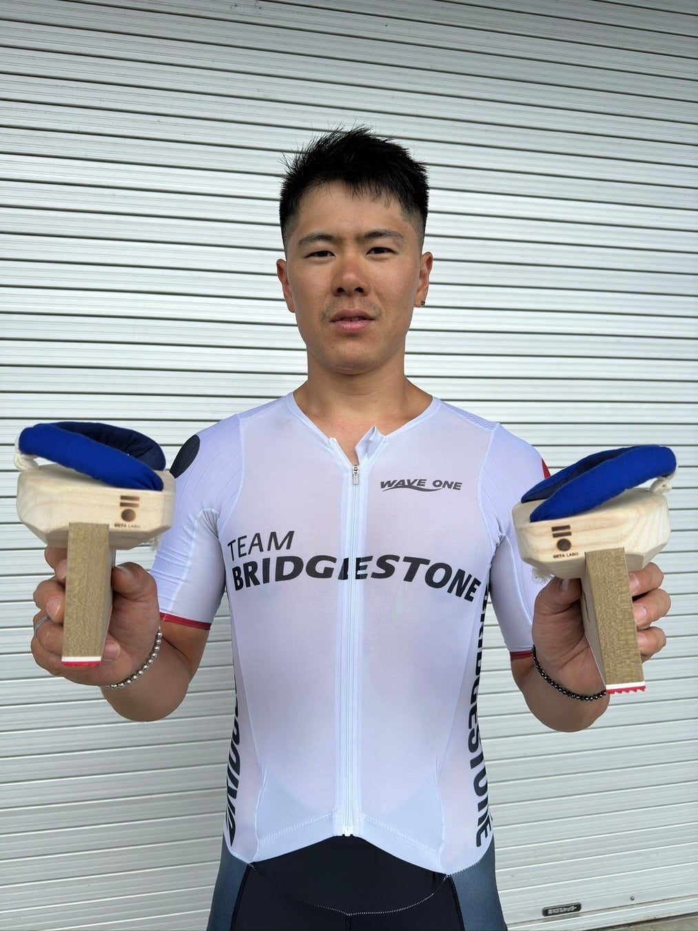 「1年ほど前に色々な下駄を試させていただき自転車競技に一番最適なものを製作していただきました。いくつもの試作を経て今回の形になったのですが感覚を掴む意味で練習前だったり遠征先のホテルで履くことが多かったです。」