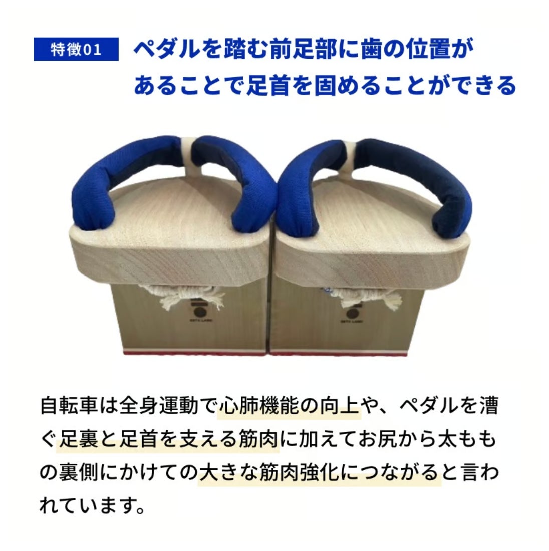 競輪や自転車競技の選手やツーリストの間では、以前から一本歯下駄をトレーニングとして活用されており、地面を歩いている感覚と自転車に乗った感覚を一致させることで日々のパフォーマンス向上につなげることができるのではないかと考えられています。