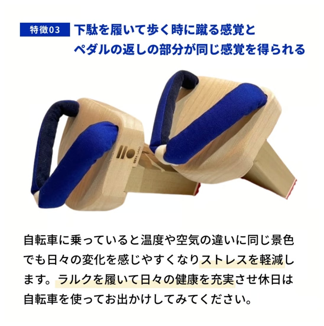 「これを履いて役に立つなと感じるのはペダルをしっかり踏み込むことができるという感覚が得られるのはもちろんですが、ペダルを漕いでいて持ち上げた時にたまに踵がグニャッとなって抜けることが少なくなって足首が安定感がでたのでこれは下駄によって鍛えられたなと感じています。」