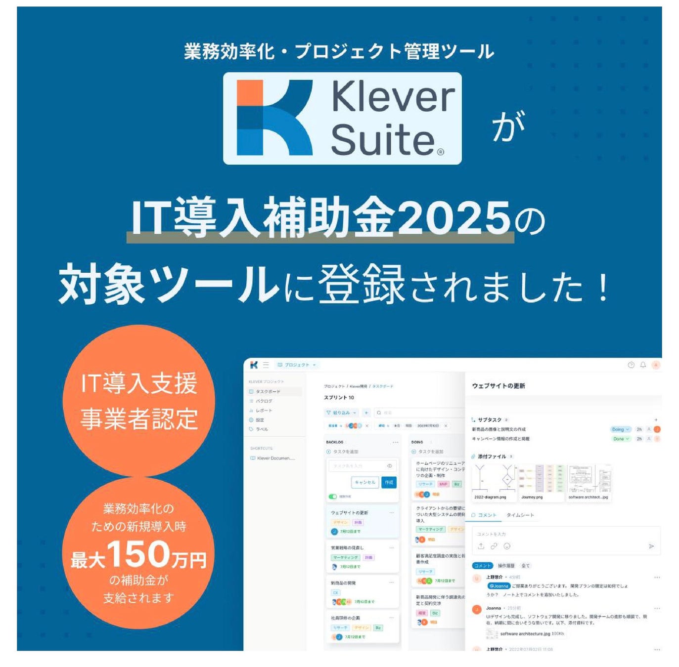 【最大150万円の導入支援】SaaS型プロジェクト管理ツール「Klever Suite」がIT導入補助金2025の対象ツールに正式登録
