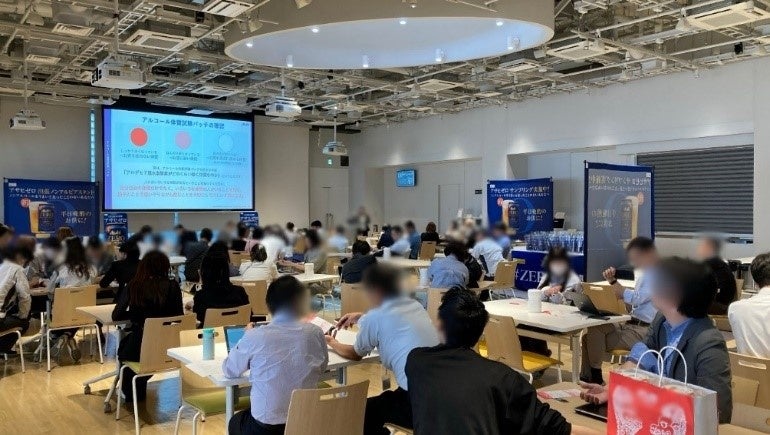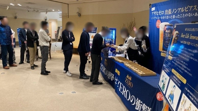同実証実験は、アルコール分0.00%のノンアルコールビールテイスト飲料『アサヒゼロ』を通じて、ビール好きの働く人たちの心身ともに健康的な生活を支援する「働くあなたにアサヒゼロ プロジェクト」の賛同企業であるTOAの本社と開発拠点において行われた『アサヒゼロ』を使った社内懇親会の場で行われました。
