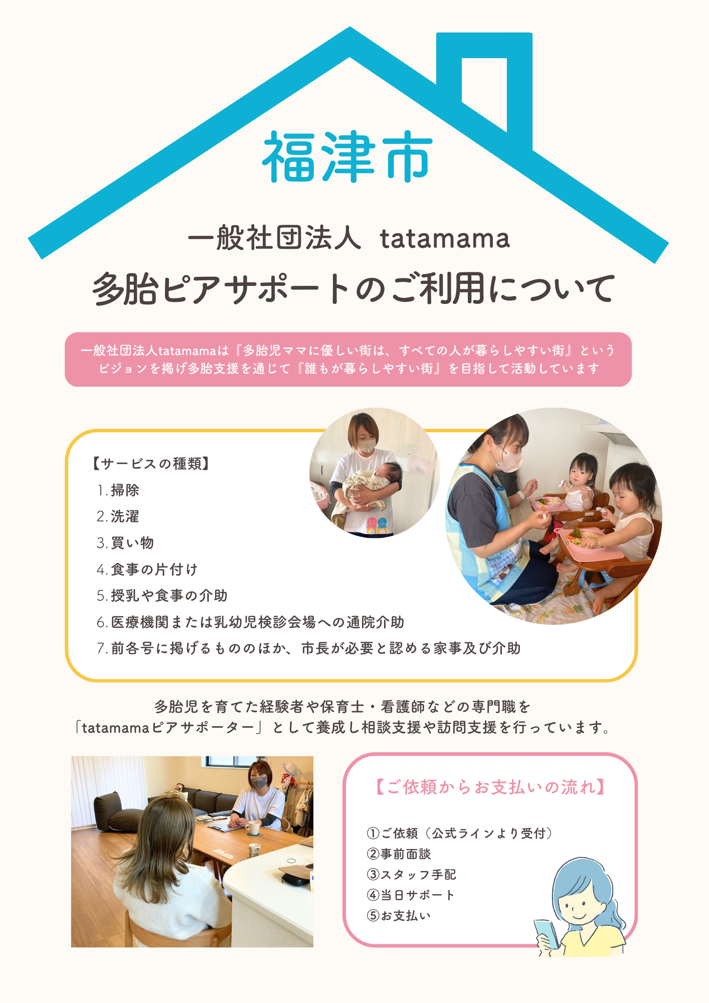 tatamamaは、これまで培ってきた多胎支援の実績と、当事者による知見を活かし、「必要なときに、必要な人へ、支援が確実に届く仕組み」を行政と連携しながら担っていきます。