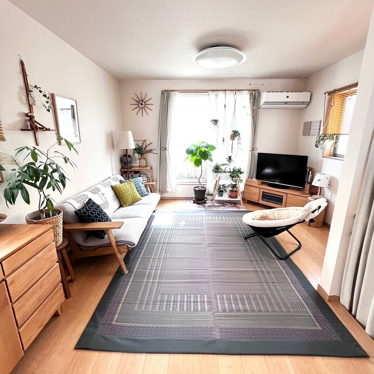 主張しすぎないカラーで仕上がっているため、さまざまなコーディネートに合います。ナチュラルなお部屋にもなじみやすく、明るいホワイトインテリアにはほどよいアクセントカラーとして合わせていただけます。また、サイズ展開も豊富でミニラグから大判のラグまで6サイズ展開しているため、ベッドサイドや一人暮らし、ファミリーユースなど様々なシーンにご使用いただけます。
