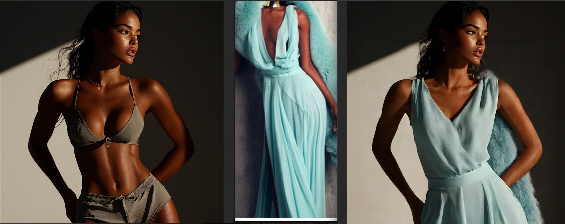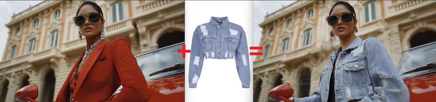 ・AIによるモデル撮影シーンの生成:リアルな服装を自在に差し替え