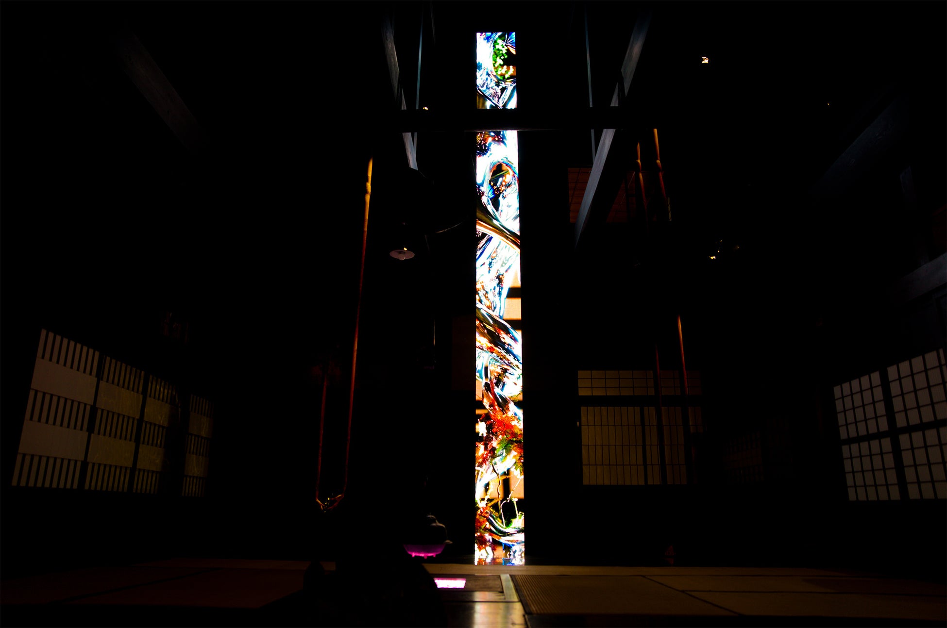 吉島家住宅:「人間でない」存在、すなわちオブジェクト指向菩薩が司る脱人間中心の世界=計算機自然を象徴するインスタレーションが広がります。