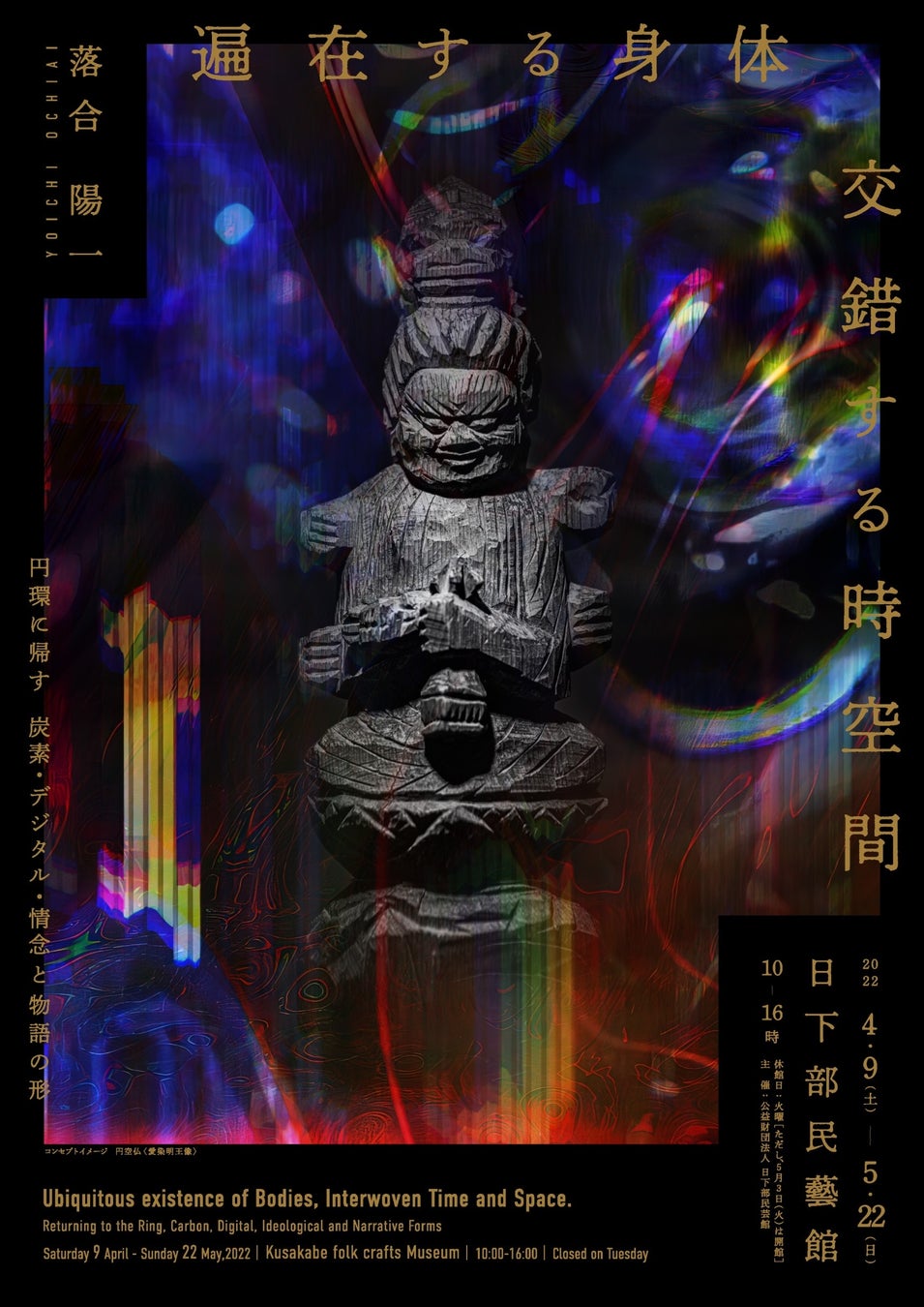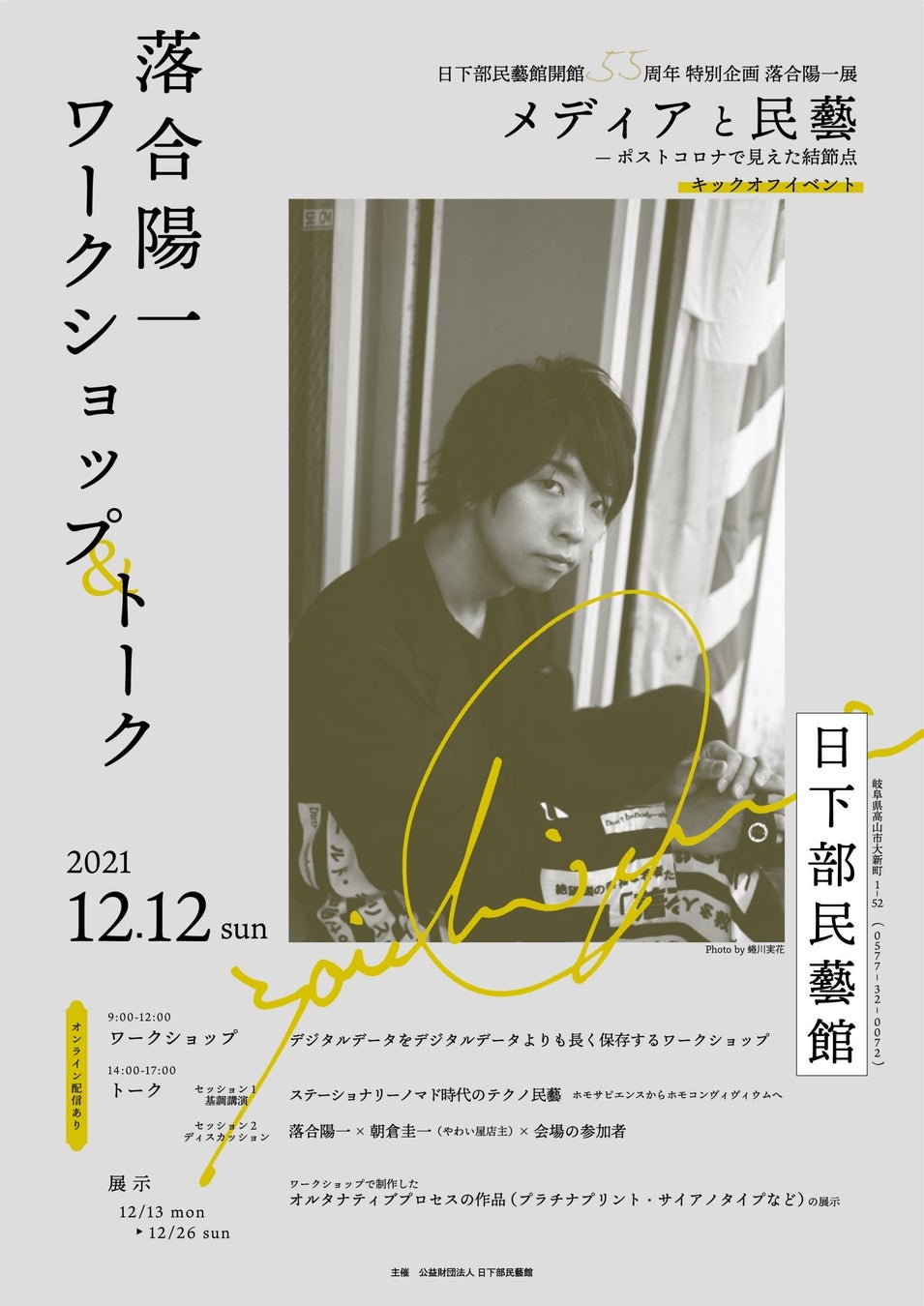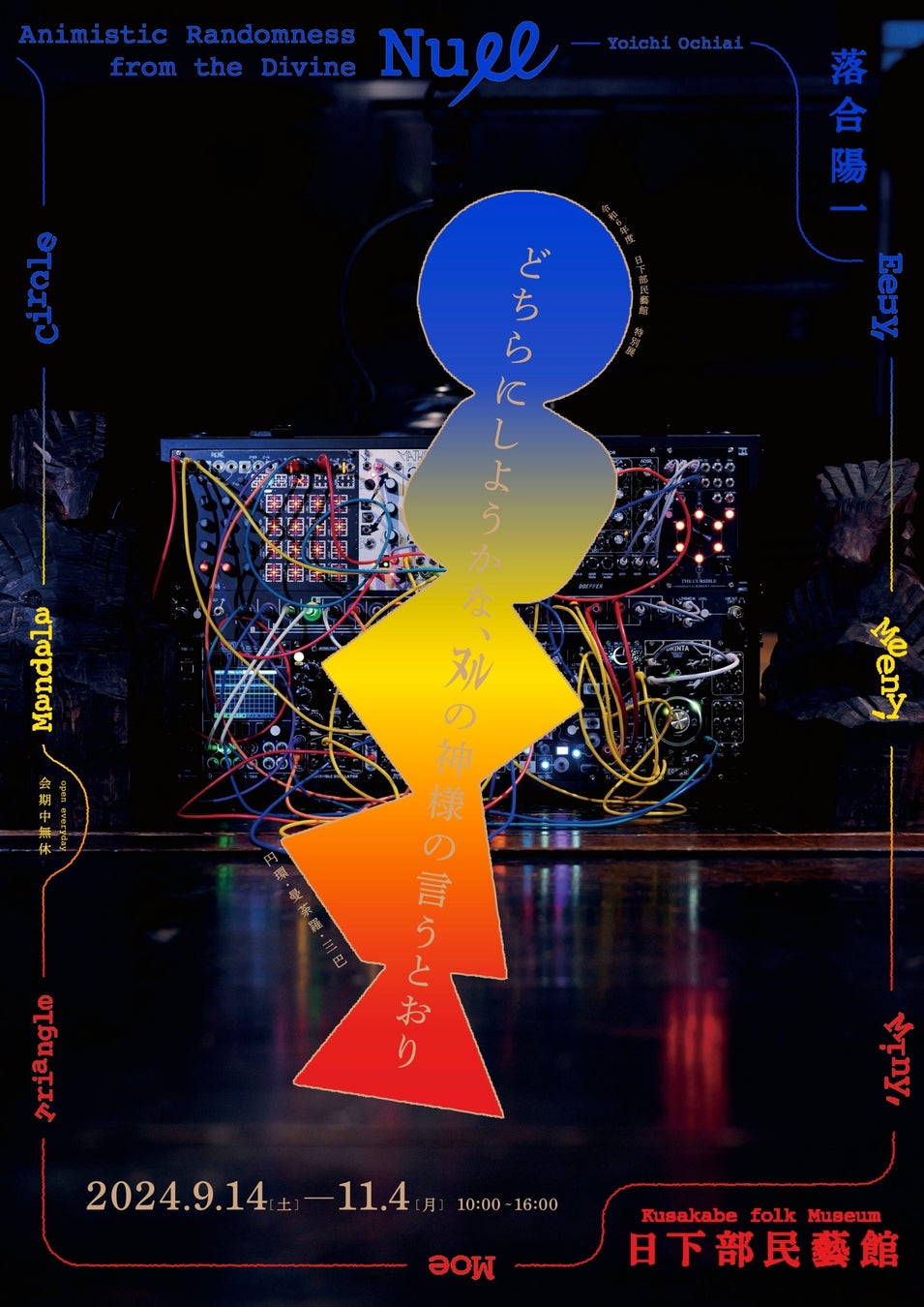 令和3年の「メディアと民藝」から始まり、令和4年度の「遍在する身体 交錯する時空間」、令和5年度「ヌル即是計算機自然 符号化された永遠 オブジェクト指向本願」、令和6年度「どちらにしようかな ヌルの神様の言うとおり、円環・曼荼羅・三巴」に続く本展は、これまでの5年間にわたる日部民藝館で行ってきた落合陽一の展覧会を総括するものです。飛騨高山での綿密なリサーチと地域の方々との協働を経て完成した作品群を一堂に集めるとともに、本展のために新たに制作する最新作をあわせて、全160点以上の作品をご覧いただきます。
