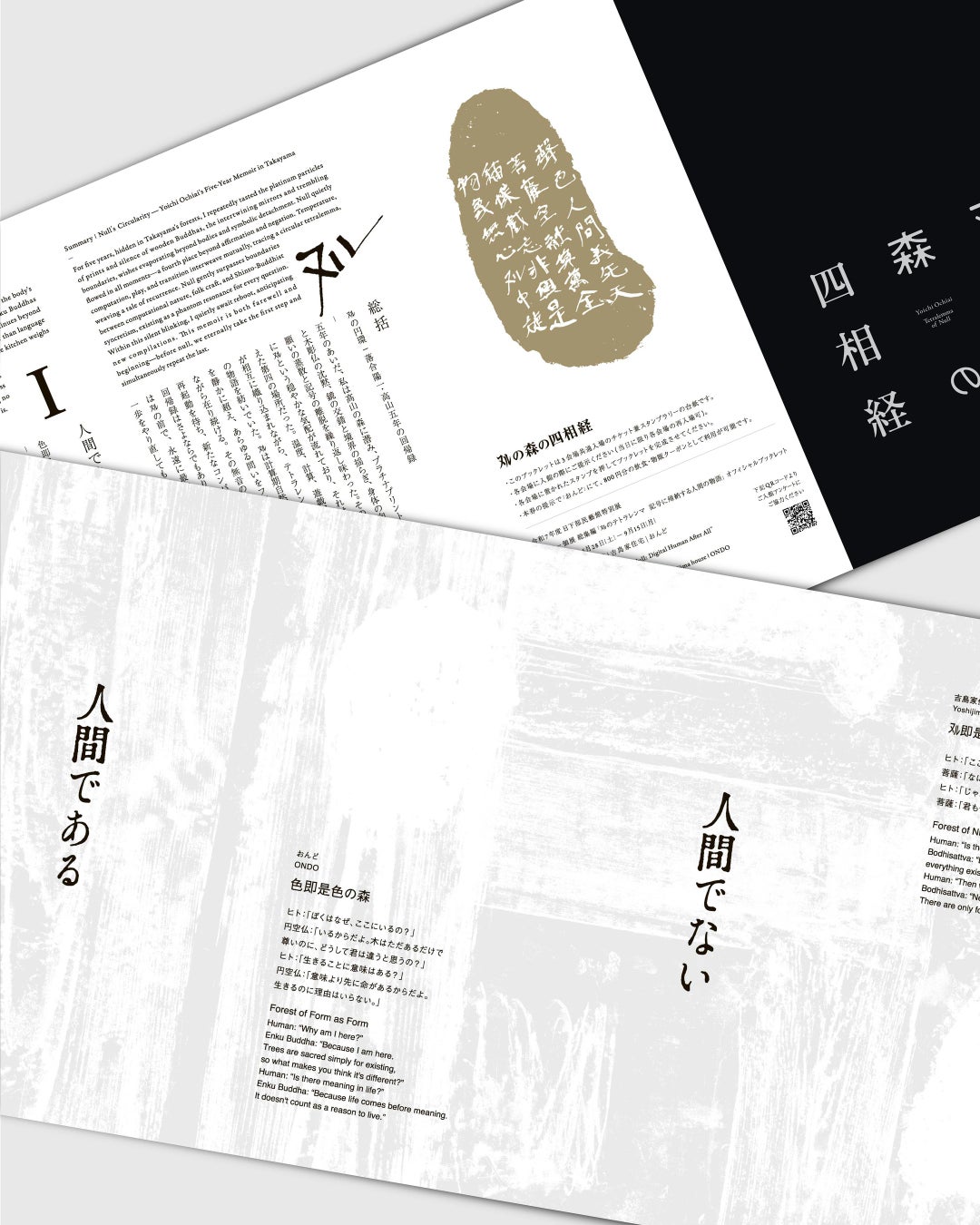 今回、万博と本展の各会場には、それぞれについての落合陽一のステイトメントが記されたブックレットが置かれ、本展入場券を購入すると配布されるブックレットにスタンプを押していくとシグネチャーパビリオン「null2」と本展によって紡がれる一つの物語が完成します。