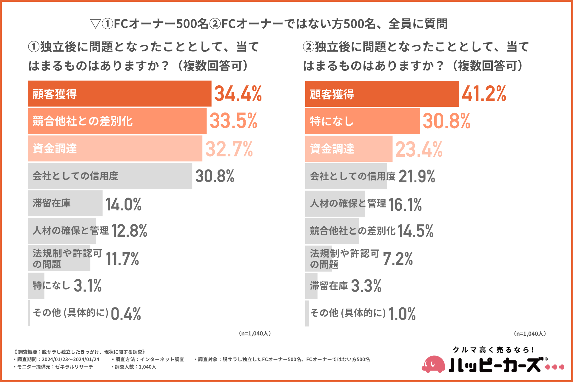 【FCオーナーの方】『顧客獲得(34.4%)』『競合他社との差別化(33.5%)』『資金調達(32.7%)』