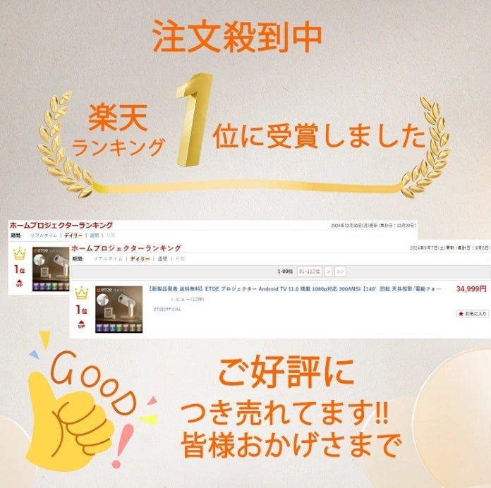 このニュースリリースは、ETOE Starfish プロジェクターの魅力を伝えるとともに、楽天市場での購入を促進するためのものです。