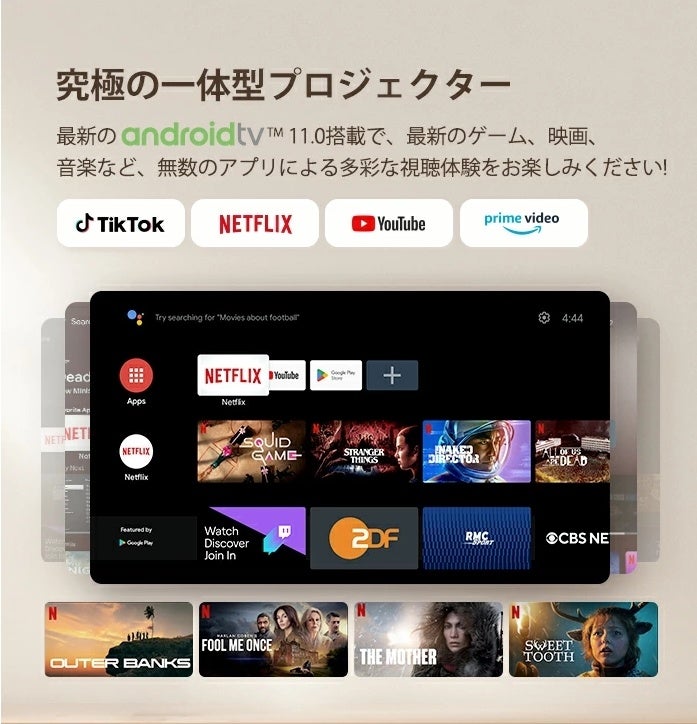 楽天市場にて、話題の新商品「ETOE Starfish プロジェクター」が登場! このプロジェクターは、4K対応の高精細映像と140°の柔軟な角度調整機能を備え、天井投影も可能な画期的なデバイスです。さらに、NetflixやDisney+、YouTubeなど、人気アプリに簡単にアクセスできるAndroid TV 11.0を搭載。家族や友人と一緒に、大画面で没入感あふれるエンターテインメント体験を楽しめます!