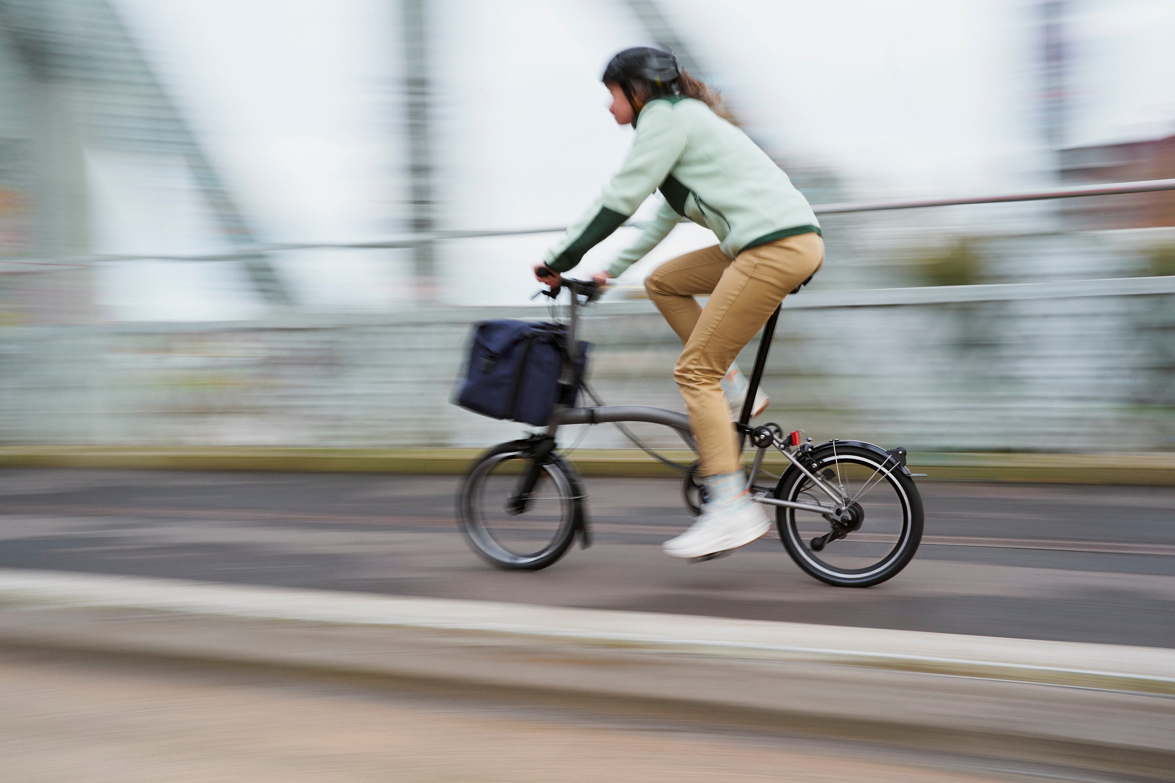 ほとんどのバイクは、ディレーラーが最も露出し傷つきやすい場所にあります。ブロンプトンもリアディレイラーはありますが、専用設計ではみ出す幅がとても小さいので、右側に倒しても、自転車を折りたたんでいても、道路を歩き回っていても、邪魔になることはありません。