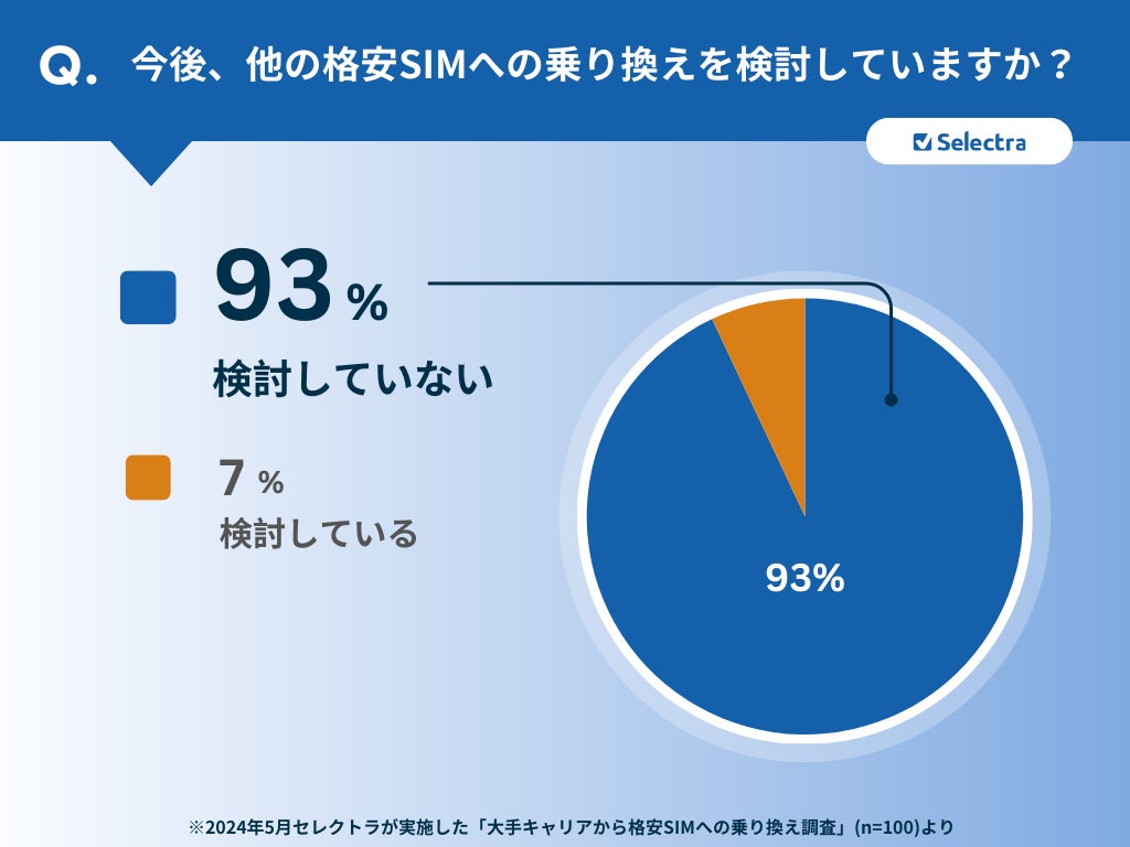回答者の93%が「今後他の格安SIMへの乗り換えを検討していない」と回答しました。