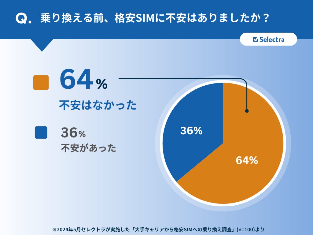 大手キャリアを使っていた64%のユーザーが、格安SIMへの乗り換えに「不安はなかった」と回答しました。
