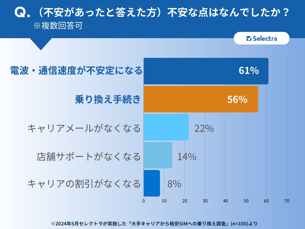 一方で「不安があった」と回答したユーザーの61%が「電波・通信速度が不安定になる」ことを心配していました。