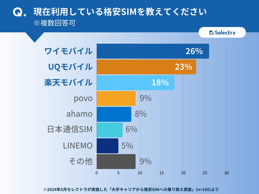 6月から楽天モバイルがプラチナバンドの利用開始を目指すなど、格安SIMへの注目が高まっています。そんな中、セレクトラ・ジャパン株式会社(東京都渋谷区、代表取締役:グザビエ・ピノン)では、2024年5月17日に無作為に選択した男女1000人の中から、「2年以内に大手キャリアから格安SIMに乗り換えた」と答えた男女100名を対象に独自のアンケートを実施しました。