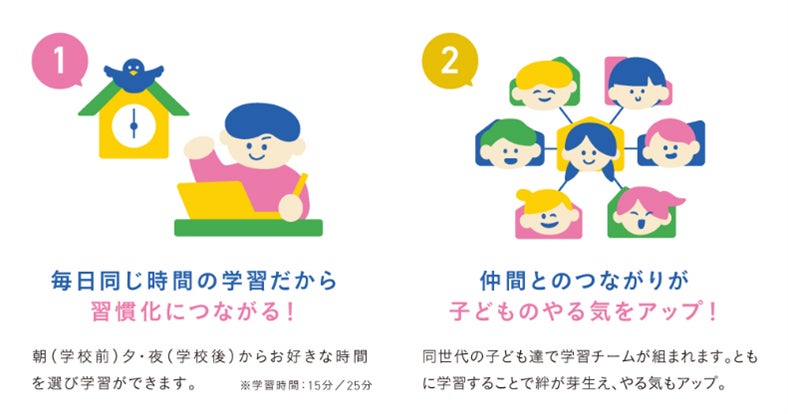 いつもの仲間と”ともに学ぶ”ことでお子さまのやる気を引き出し、毎日の学習習慣化を実現します。
